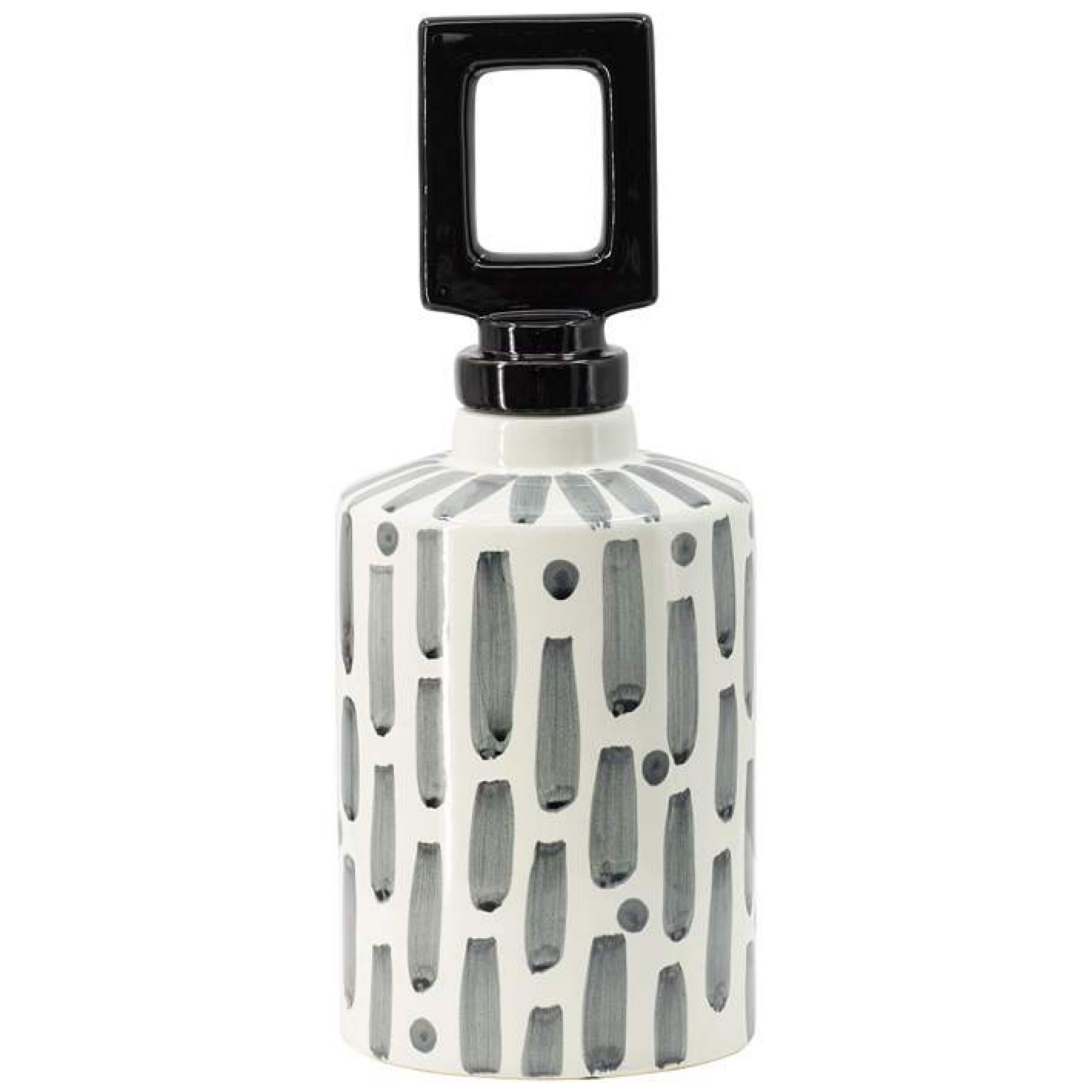 A&B Home White and Gray Cylindrical Ceramic Lidded Vase 5.5 5.5