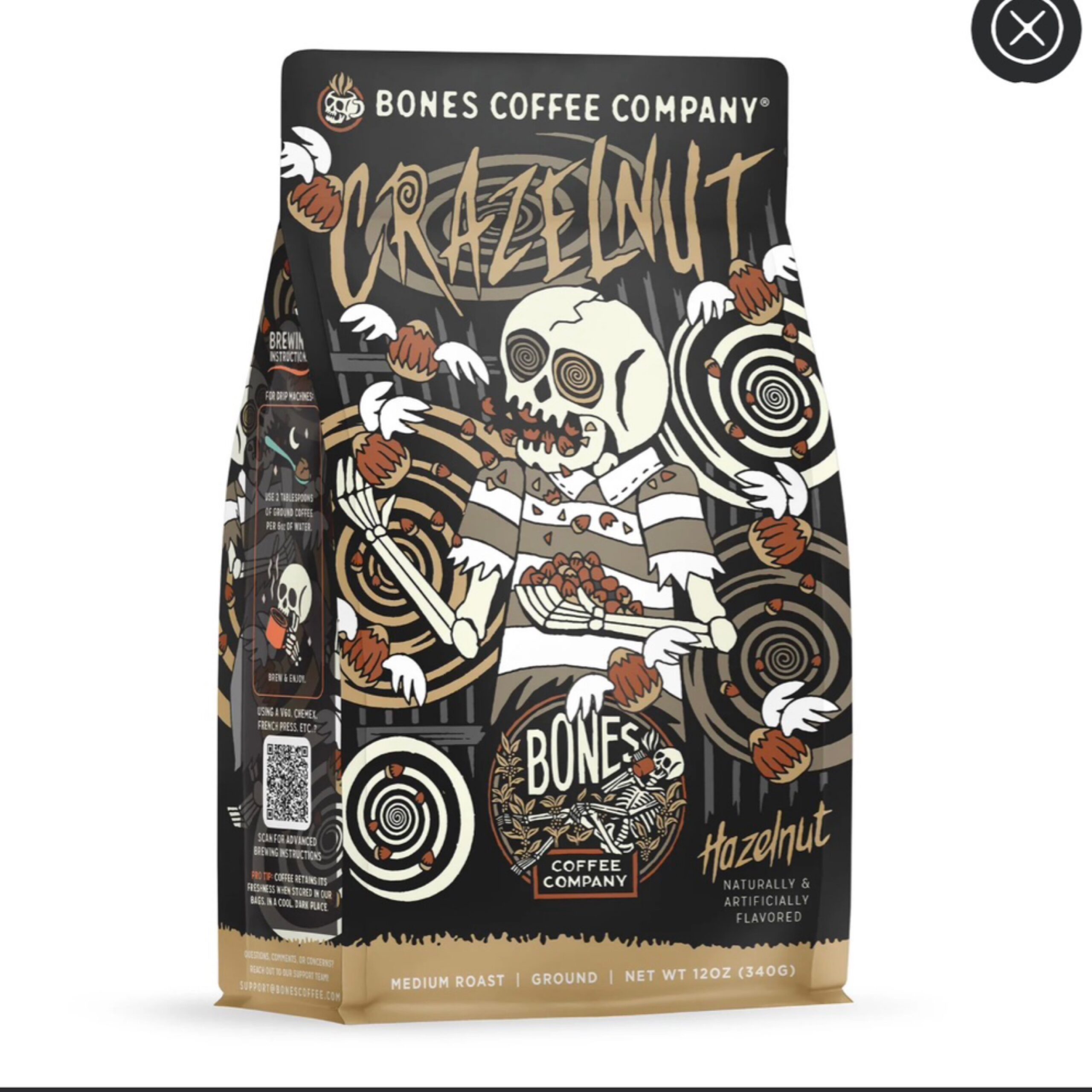 Bones Coffee Company Crazelnut Ground Coffee Beans Hazelnut Flavor | 12 oz Flavored Coffee Gifts Low Acid Medium Roast Gourmet Coffee (Ground)