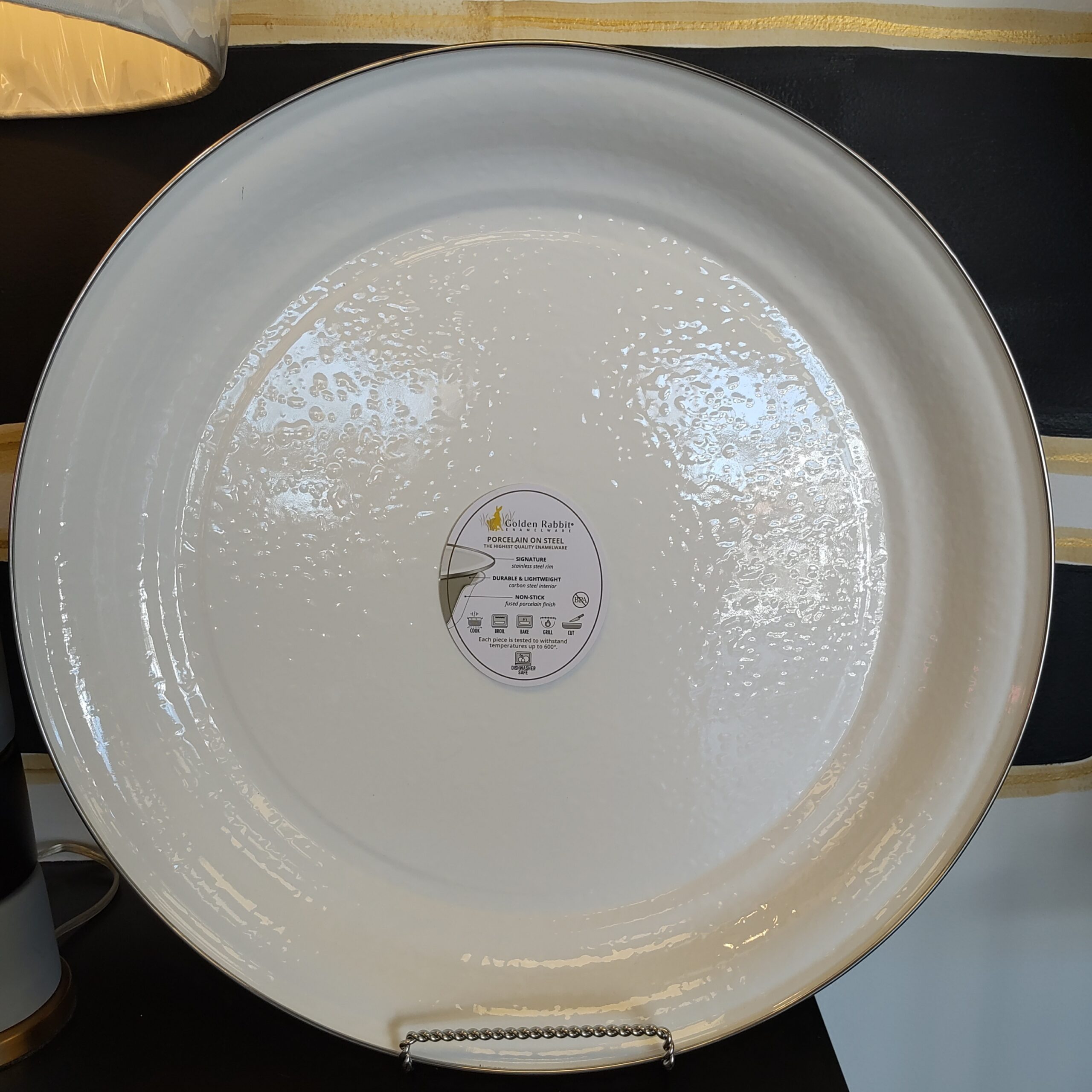 Golden Rabbit Solid White Enamelware Collection 20″ Serving Tray
