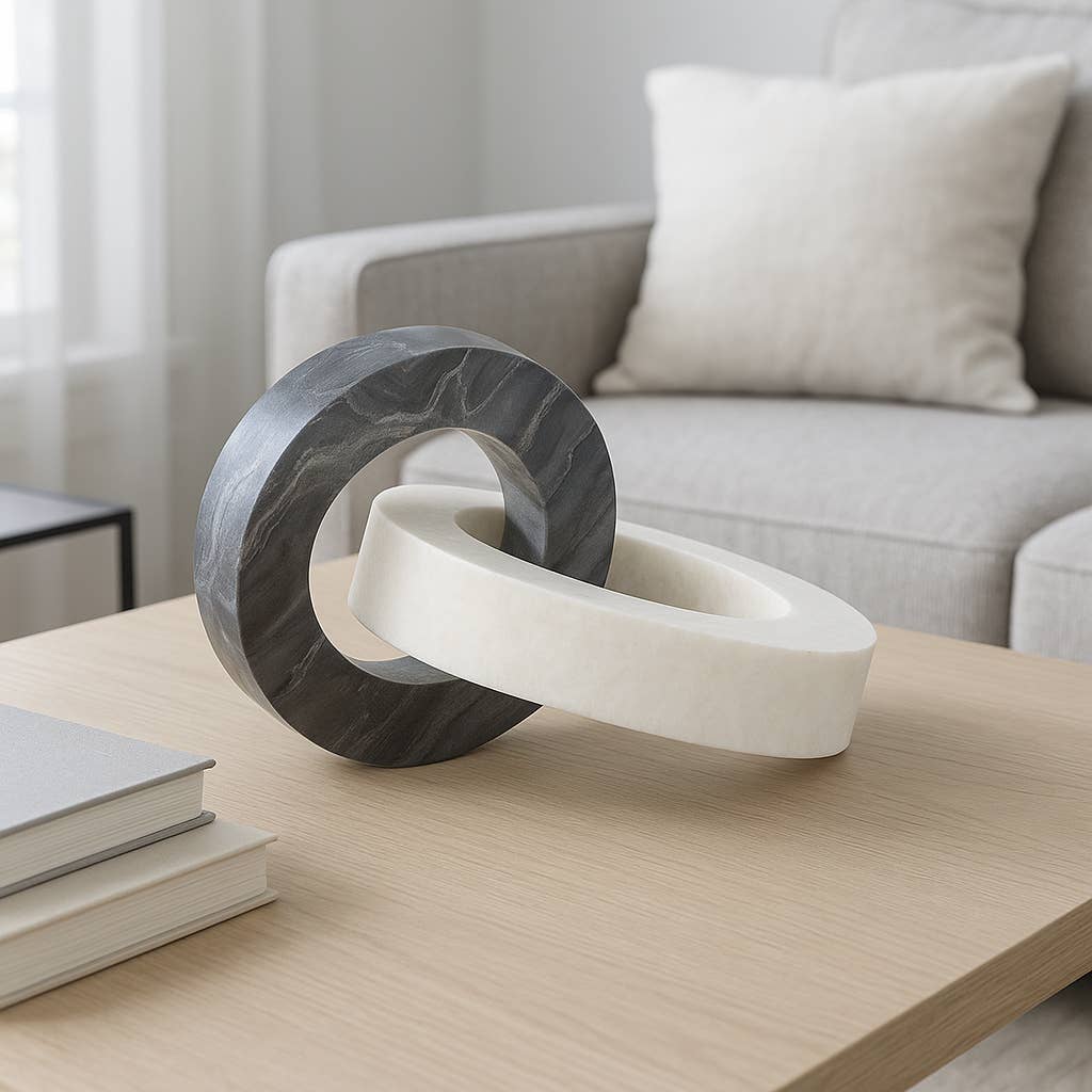 Marble Interlocking Rings Decor Sculpture – White, 8 in.